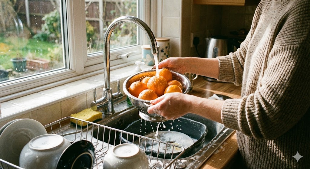 - 물기 닦기: 씻은 귤은 키친타월로 물기를 완전히 닦아줍니다. (수분은 부패의 원인!)