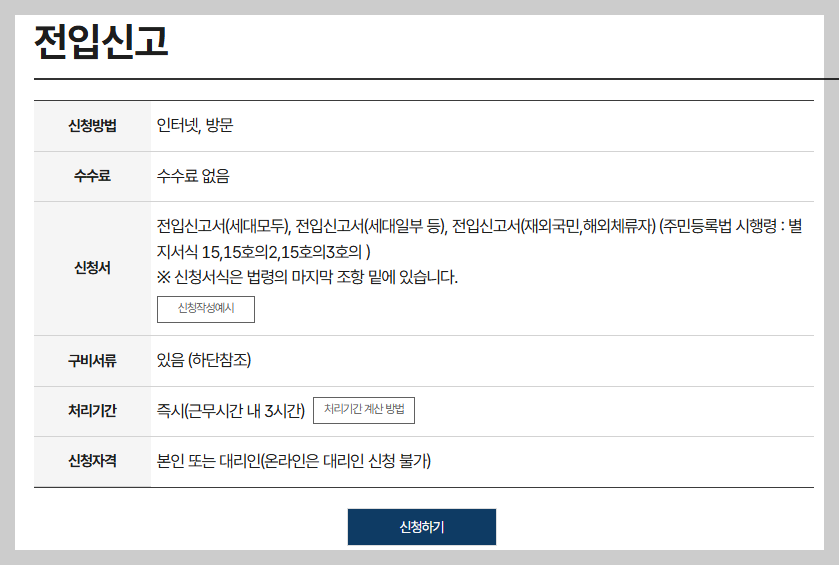 전입신고(정부24 홈페이지)