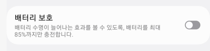 One UI 6.1 이상인 최신 버전에서는 '배터리 보호' 메뉴로 들어가면 세 가지 옵션이 나옵니다. 여기서 '최대'를 선택하세요. 배터리가 80%에 도달하면 충전이 완전히 멈춥니다. 그 이전 버전에서는 '기타 배터리 설정' 메뉴에 있는 배터리 보호 스위치를 켜주세요. 켜는 즉시 최대 충전량이 85%로 제한됩니다. 이 기능을 활성화하면 충전기를 밤새 꽂아두어도 배터리 숫자가 80%(또는 85%)에서 멈춰 더 이상 올라가지 않습니다. "100%가 아니라 불안하다"고요? 이 설정으로 인해 줄어든 20%의 사용 시간보다, 배터리 노화로 인해 1년 뒤 잃게 될 50%의 성능 저하를 막는 것이 훨씬 이득입니다.