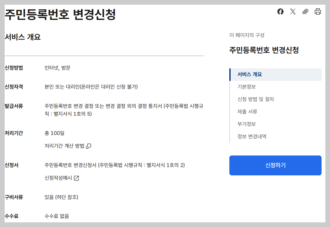 주민등록 번호 변경 절차와 준비서류