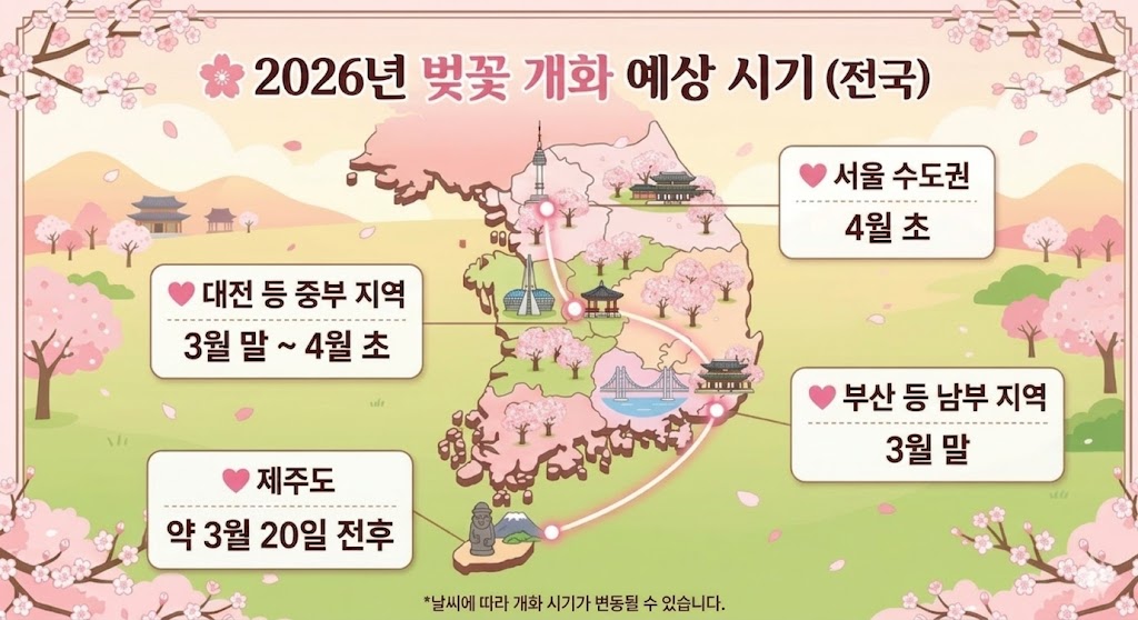 2026년 벚꽃 개화 예상 시기를 정리하면